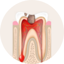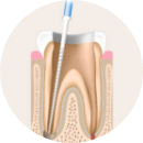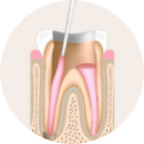 손상된 충치 부위를 제거한 후 뿌리 쪽 신경이 있는 부위까지 접근하여, 염증이 생긴 조직을 깨끗하게 제거합니다.