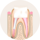 치아 뿌리 안의 빈 공간을 생체 친화적이고 밀폐력이 뛰어난 재료로 충전하여, 세균의 재침입을 막고 내부를 안정화합니다.