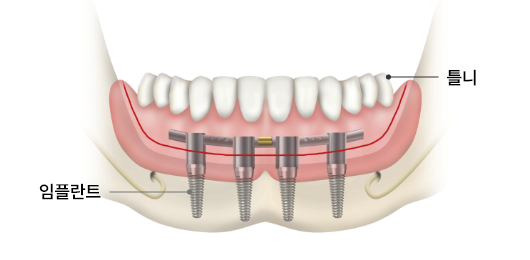 턱뼈에 인공 치근을 심는 것으로